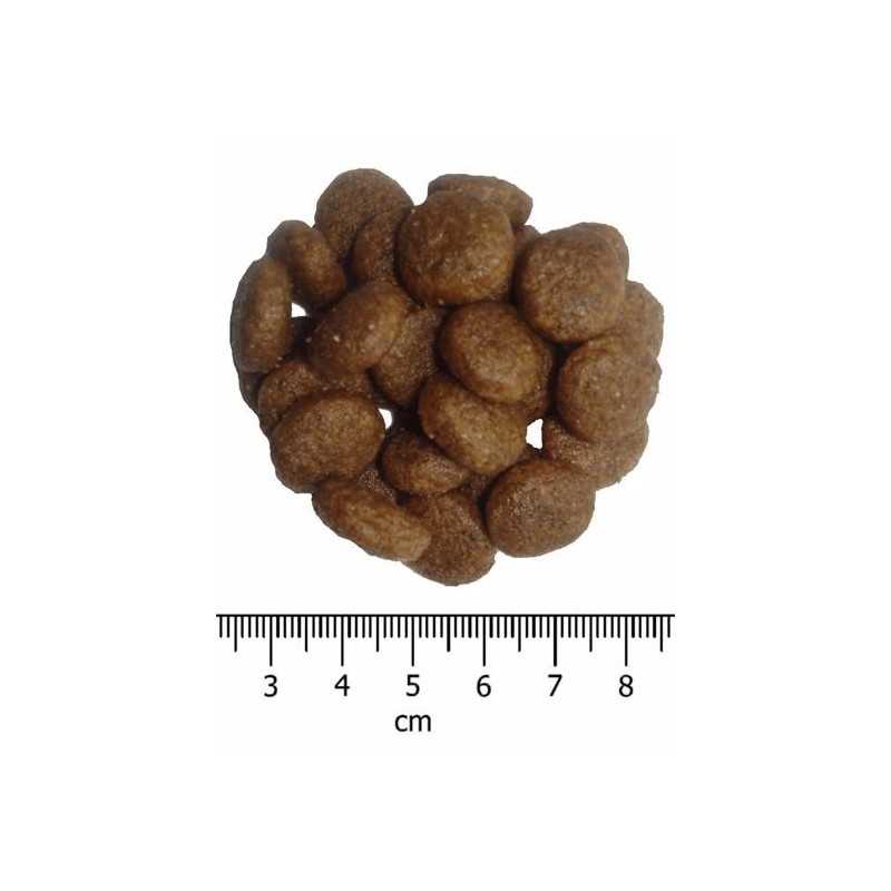 ZLOŽENIE: Čerstvé kuracie mäso (35%), sušené kuracie mäso (25%), ryža (15%), kurací olej, hydrolyzát z kuracej pečene (5%), ryžový proteín, kvasnice, repná dužina, rybí olej, chlorid sodný, polyfosfát sodíka (0,3%), chlorid draselný, inulín (500 mg / kg-FOS), manan-oligosacharidy (130 mg / kg), extrakt z juky.