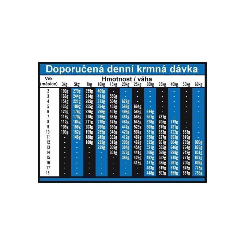 ANALYTICKÉ ZLOŽKY: Hrubý proteín 28,00%, olej a tuky 17,00%, EPA + DHA 650 mg / kg, vláknina 1,95%, popol 7,00%, vápnik 1,30%, fosfor 1, 10%.