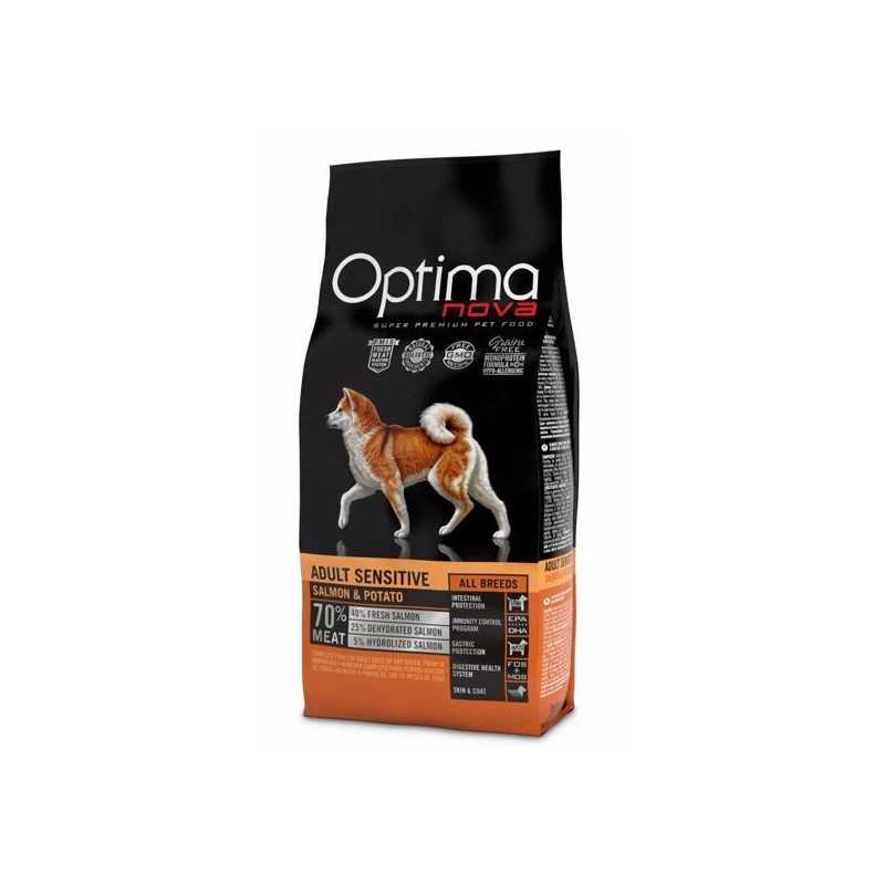OPTIMA nova dog ADULT SENSITIVE - kompletné krmivo pre dospelých psov všetkých plemien s citlivou pokožkou a zažívaním od 10 mesiacov veku z lososa a zemiakov