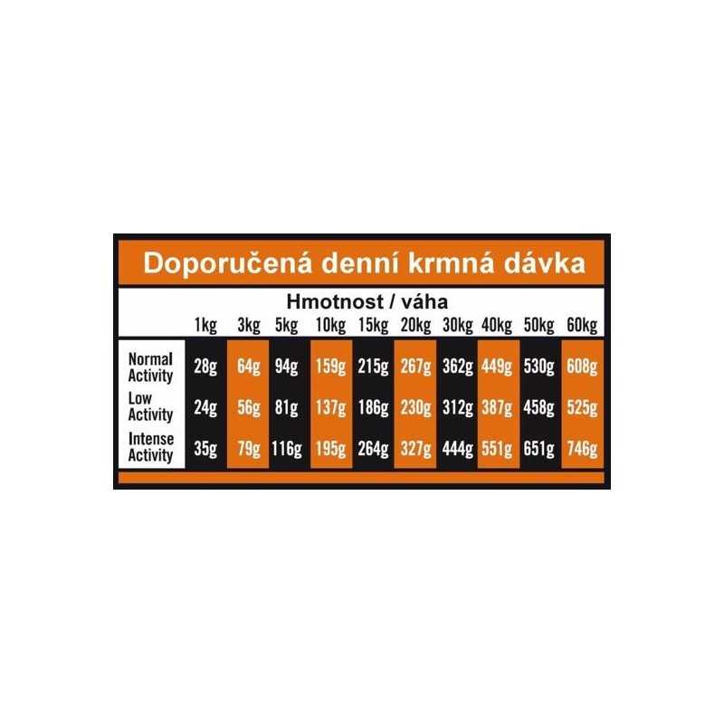 ANALYTICKÉ ZLOŽKY: Hrubý proteín 27.00%, olej a tuky 16.00%, EPA + DHA 2.550 mg / kg, vláknina 2,75%, popol 7,00%, vápnik 1,10%, fosfor 0,85%.
