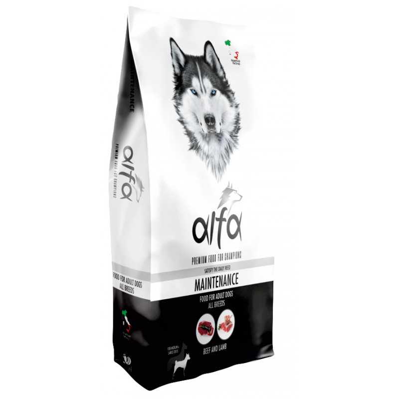 Alfa Maintenance je produkt s vysokou nutričnou hodnotou, ktorý dokáže ponúknuť kompletnú a vyváženú stravu vďaka optimálnemu prísunu bielkovín, tukov, sacharidov, vitamínov a minerálov užitočných pre výživu a pohodu Vášho psa.