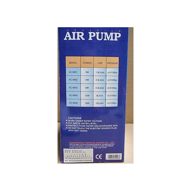 Akváriový vzduchovací motorček. Dá s ku nemu pripojiť vzduchovací kameň a rôzne dekorácie. Vzduchovací motorček musí byť umiestnený nad hladinou akvária, aby nedošlo ku jeho poškodeniu, alebo výpadku elektrického prúdu.